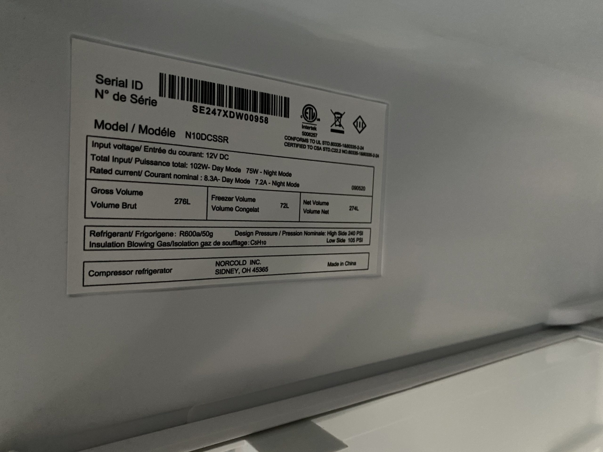 This is the first factory installed Norcold N10DCSSR refrigerator that I have been able to play with. The ATC toy haulers from 2020 and newer will use about 30AH of battery per day with the 12v switch on and no other usage. My testing showed the Norcold 10 cu ft will use about 80AH of battery per day for the fridge alone. With the load of the DC powered fridge and the parasitic loads of the Toyhauler the battery bank needs to be bigger/better than what comes stock from the factory.
